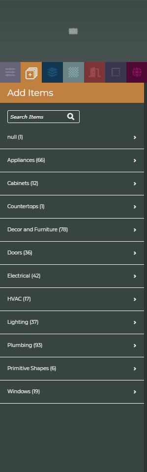 First, click on the “Add Items” icon in the right sidebar. This will display the different Item Categories you can browse through.