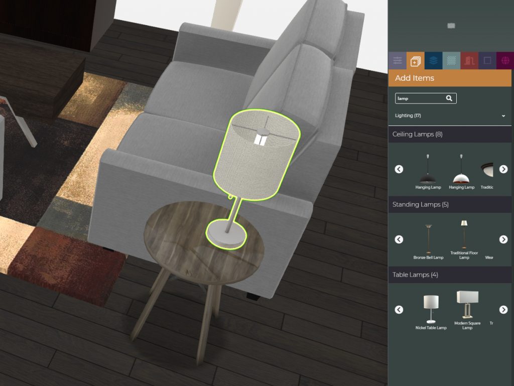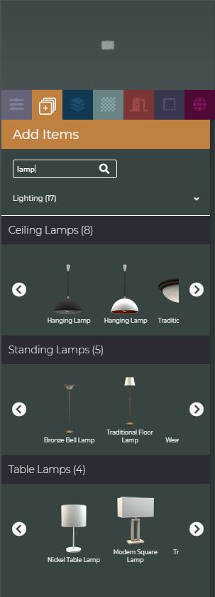 Once you have determined which Item you would like to place in your scene, simply click the thumbnail of the Item in the sidebar and it will be automatically added to your scene.